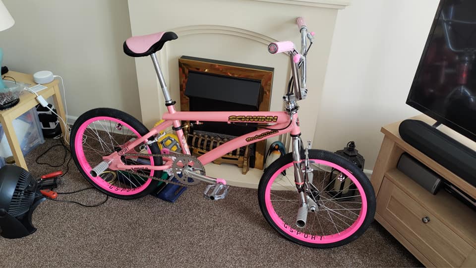 Quote from: Mikku on August 25, 2022, 11:49 PMGetting there! Shame about the wheels but as you say, this bike is going to be ridden, so best get them done right, eh. Yeah TBH I knew from the struggle I had getting the crossed spoke in that something totally wasn't right. Apparently two spokes snapped when he took them apart too (this also didn't surprise me given the horrid noise they were making ) so I got lucky.He turned up a couple of hours back. Delivered them like. Said 80, which was amazing, but bunged him another tenner.Since last pics I have cut the grips at the lever end. Just took off the maroon collar so the levers come up properly and have max pull. If they fall apart? so be it. Got my eye on some clear pink ones any way I have also put on the flexible noodle. Needed another cable tie, but fits into the socket on the arm properly (the bent one is stiff and doesn't go all the way in. I knew what would happen... I would pull it hard, it would pull itself in and I would have no brake. SLIC cable has been installed too.Oh and the chain is on, obs. I will dial the feck out of the brakes later. I never do that during the day. It's a much better night pursuit Levers need tucking slightly.
